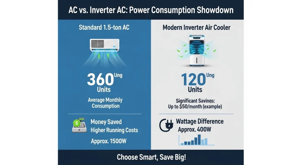 - 1.5 Ton Inverter AC: 1,200+ Watts