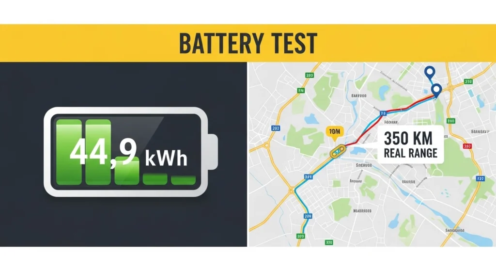 This is a very respectable number for a 45 kWh battery. To give you some context on efficiency, let’s compare it to a Hummer EV. A Hummer has a massive 212 kWh battery (four times larger) but only gives 600 km range. The Dongfeng Vigo uses a quarter of that power to deliver half the range. This proves the car is highly efficient.