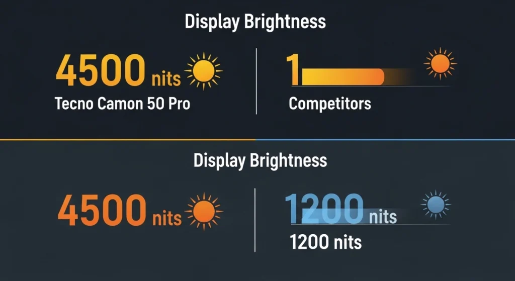Let’s talk about that screen. The Tecno Camon 50 Pro features a 3D curved AMOLED display with 1.5K resolution. Most competitors are still stuck at 1080p. But Tecno went ahead and gave us 4500 nits of peak brightness. That is enough to read a WhatsApp message even in the blinding noon sun of Multan.