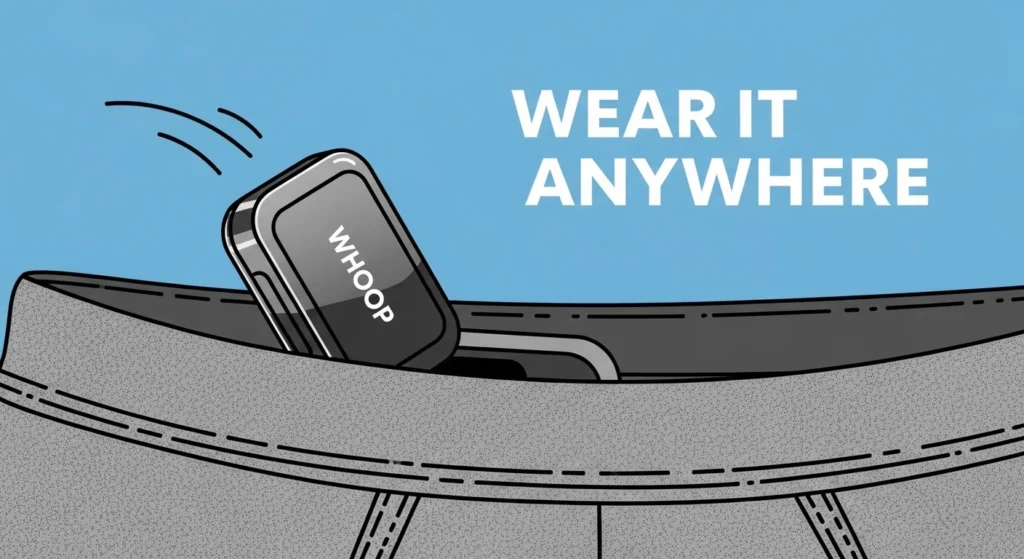 The company makes “Whoop Body” clothes. This means you can put the Whoop MG sensor into your underwear, a leg band, or an arm sleeve. As long as the sensor touches your skin, it will track your data perfectly. This is great for athletes who can’t wear jewelry during games.